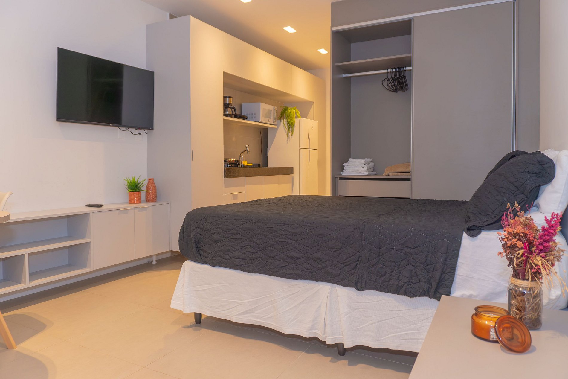 Tenha uma experiência única em nosso flat aconchegante e cheio de estilo, localizado a 2 quadras do mar, próximo a restaurantes, supermercados, bares e shoppings. No Rooftop 470 você tem acesso a coworking, academia, conveniência, lavandeira, piscina, sauna, salão de festas com churrasqueira. Perfeito para dias leves e felizes