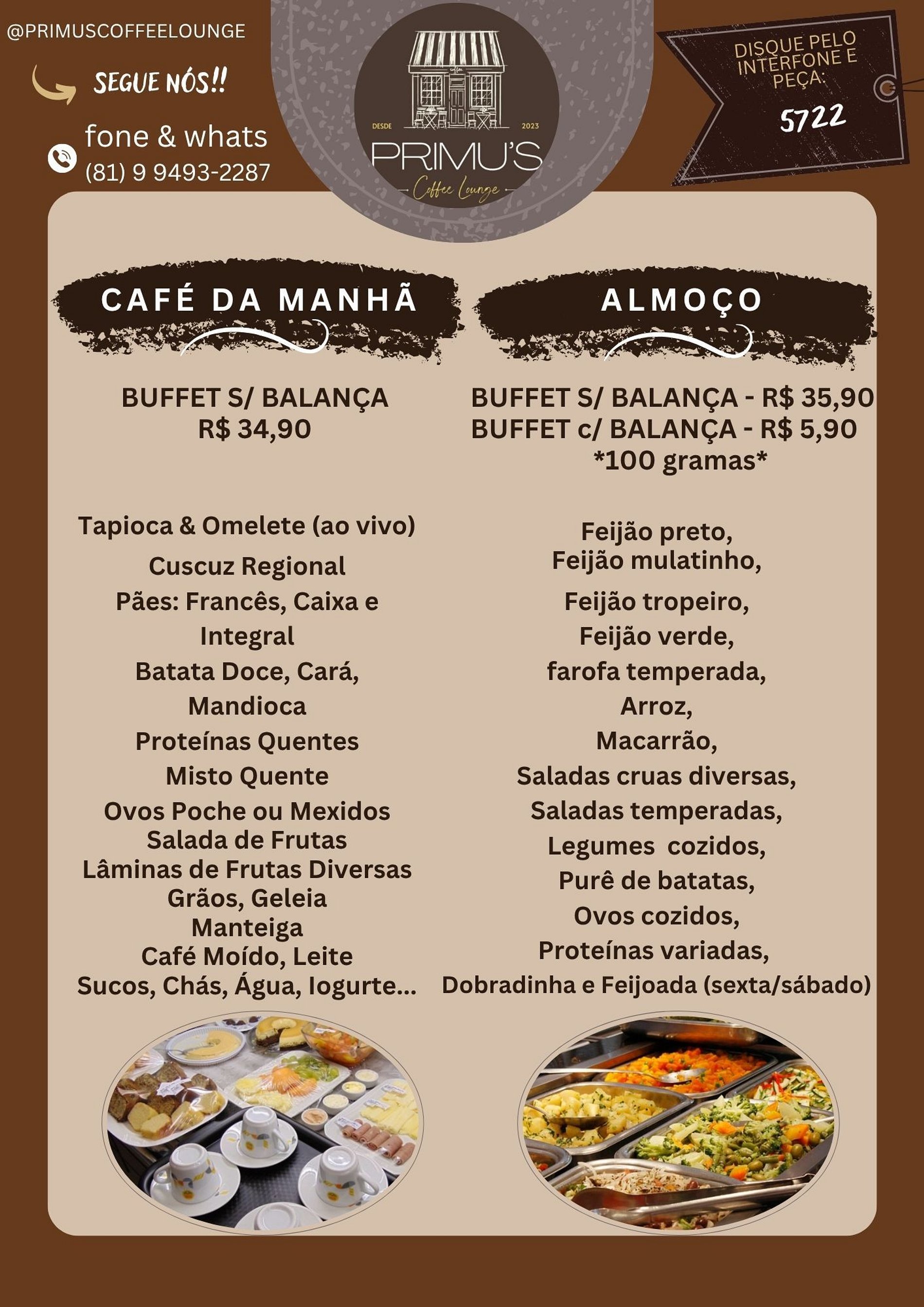 Café da manhã opcional (pago a parte) - 34,90 Buffet sem balança Almoço opcional (pago a parte) - 35,90 Buffet sem balança